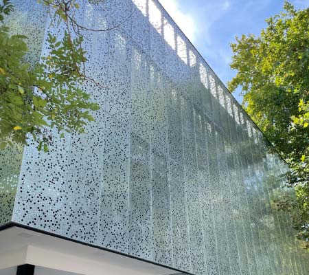Las opciones para diseñar una fachada con paneles de chapa perforada son infinitas. Desde revestimientos uniformes con perforaciones estándar, pasando por el uso de perforaciones decorativas o láser de nuestro catálogo, hasta diseños nuevos y/o alocados, pensados desde cero junto al cliente.