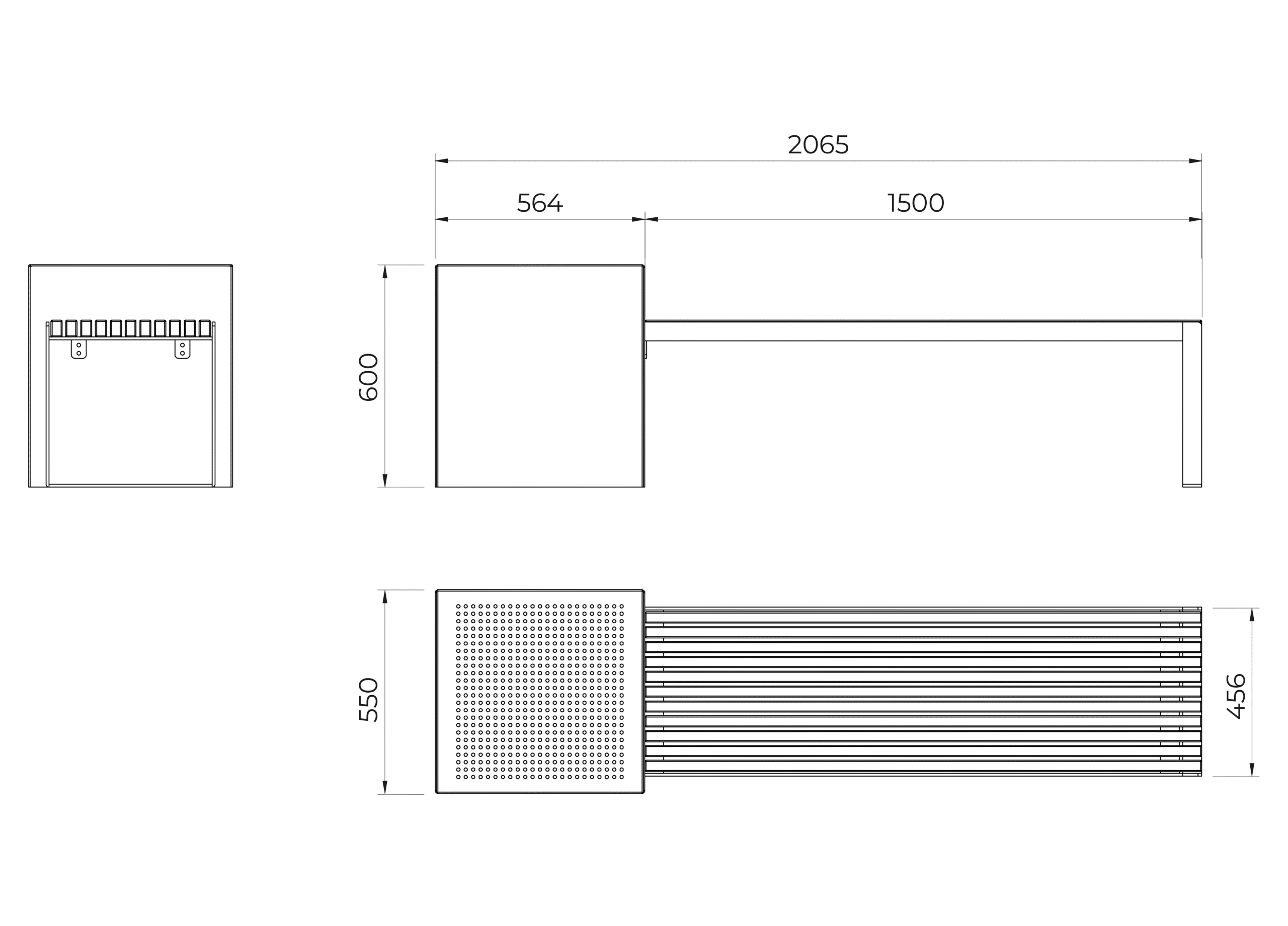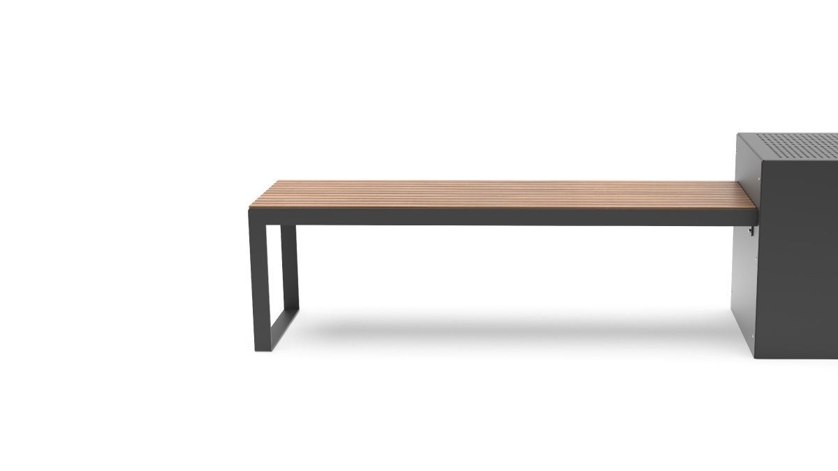 Puede utilizarse con o sin respaldo, integrarse con un macetero o funcionar como unidad individual. Además, el módulo Box también puede emplearse como mesa, lo que amplía sus posibilidades de uso y lo convierte en una pieza multifuncional dentro del mobiliario urbano.