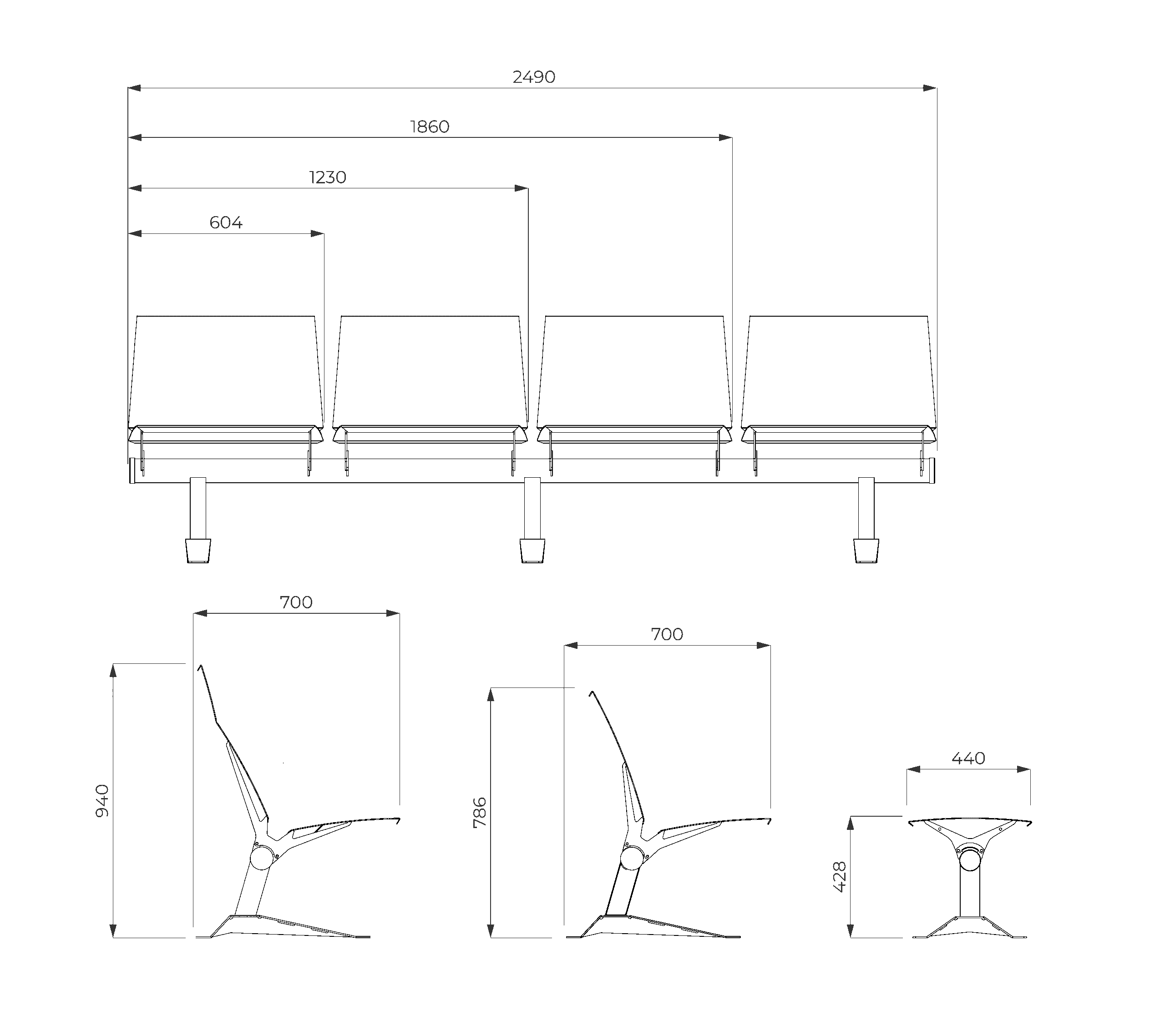 Sus butacas desmontables permiten múltiples configuraciones según las preferencias del cliente. Pueden intercambiarse por asientos de diferentes tamaños, con o sin respaldo, o incluso por mesas de vidrio, chapa lisa o chapa perforada, logrando un sistema versátil que combina comodidad, resistencia y diseño adaptable.
