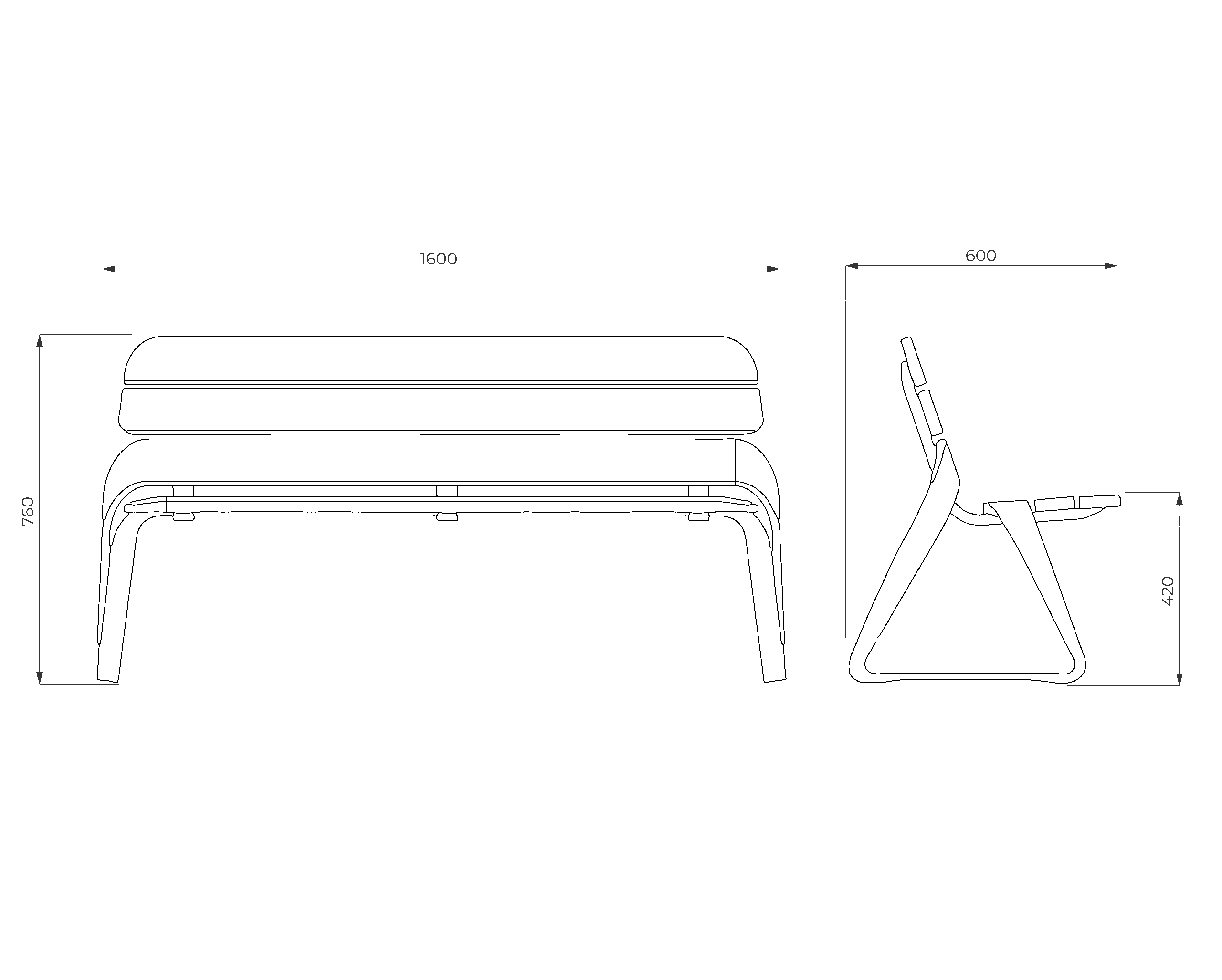 Un banco sólido, funcional y duradero, concebido para ofrecer confort y presencia urbana, manteniendo su calidad estética y técnica a lo largo del tiempo.