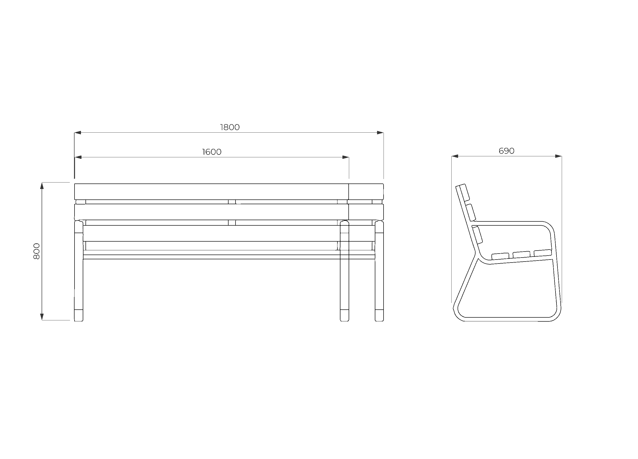 Un banco sólido y elegante, diseñado para el uso intensivo en espacios urbanos, manteniendo su carácter, confort y presencia a lo largo del tiempo.