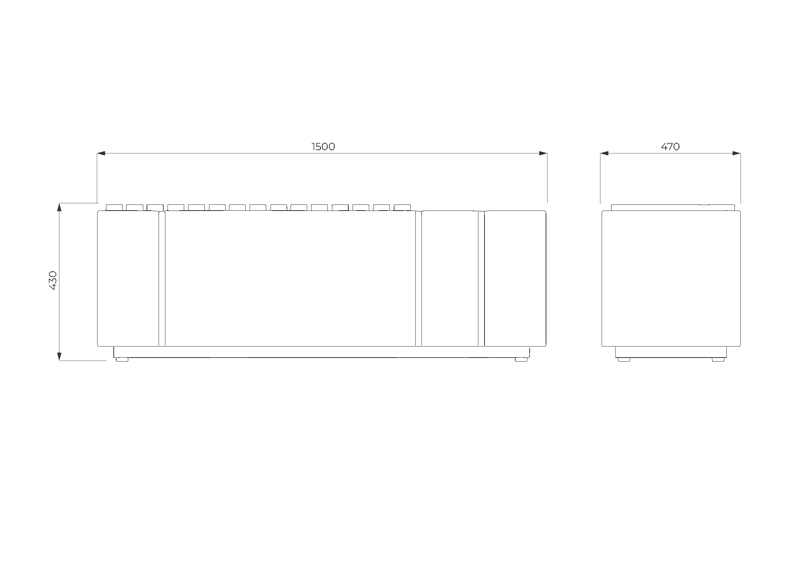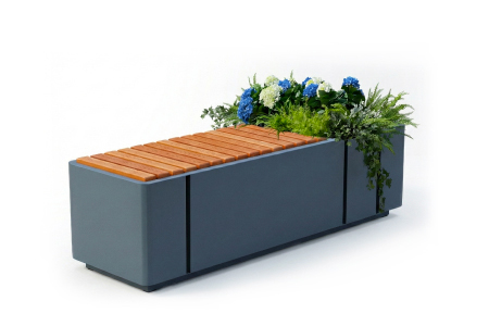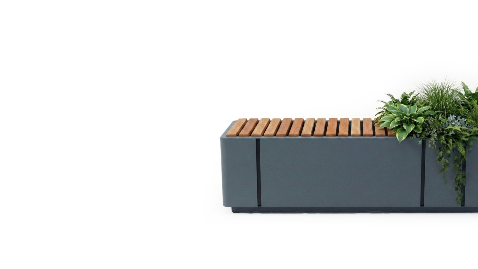 Un banco contemporáneo y funcional, que integra asiento y macetero en una única pieza, mejorando la experiencia del usuario y aportando valor al entorno construido.
