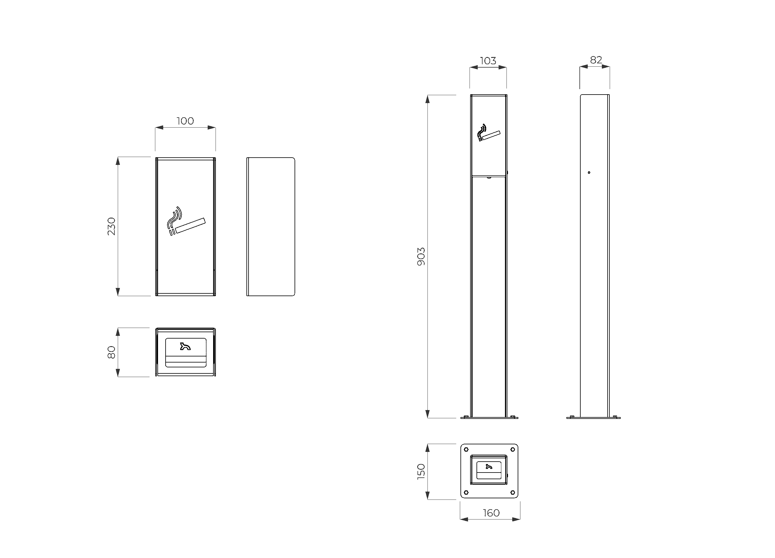 Un cenicero elegante y versátil, pensado para espacios de alto tránsito que requieren soluciones prácticas, durables y visualmente discretas.