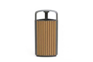 Un cesto robusto y funcional, pensado para el uso intensivo y para mantener el orden y la limpieza en el espacio público, acompañando de manera coherente el lenguaje del mobiliario urbano contemporáneo.