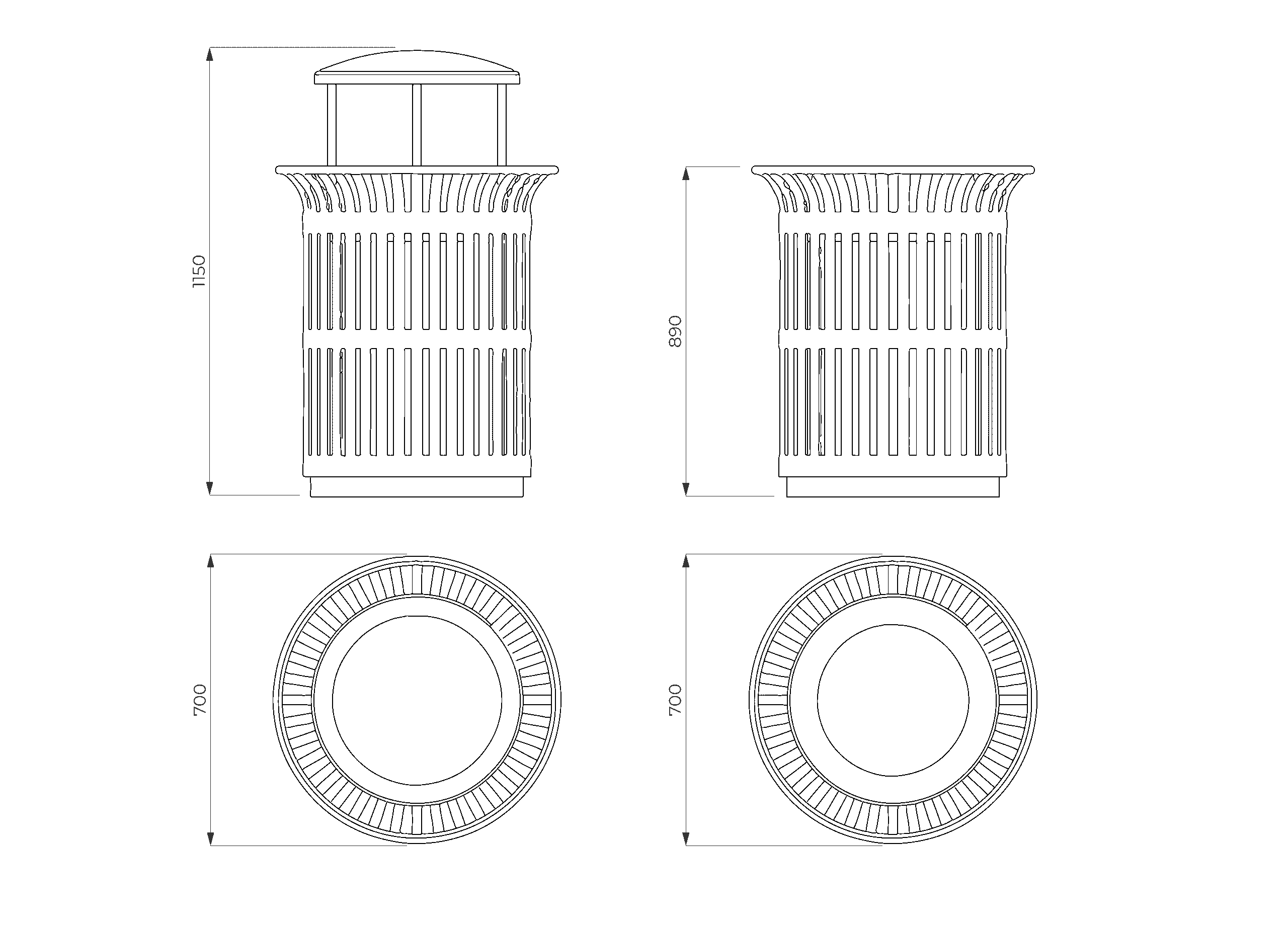 Un cesto sólido y confiable, pensado para espacios abiertos que requieren soluciones contundentes, funcionales y de larga vida útil dentro del paisaje urbano.