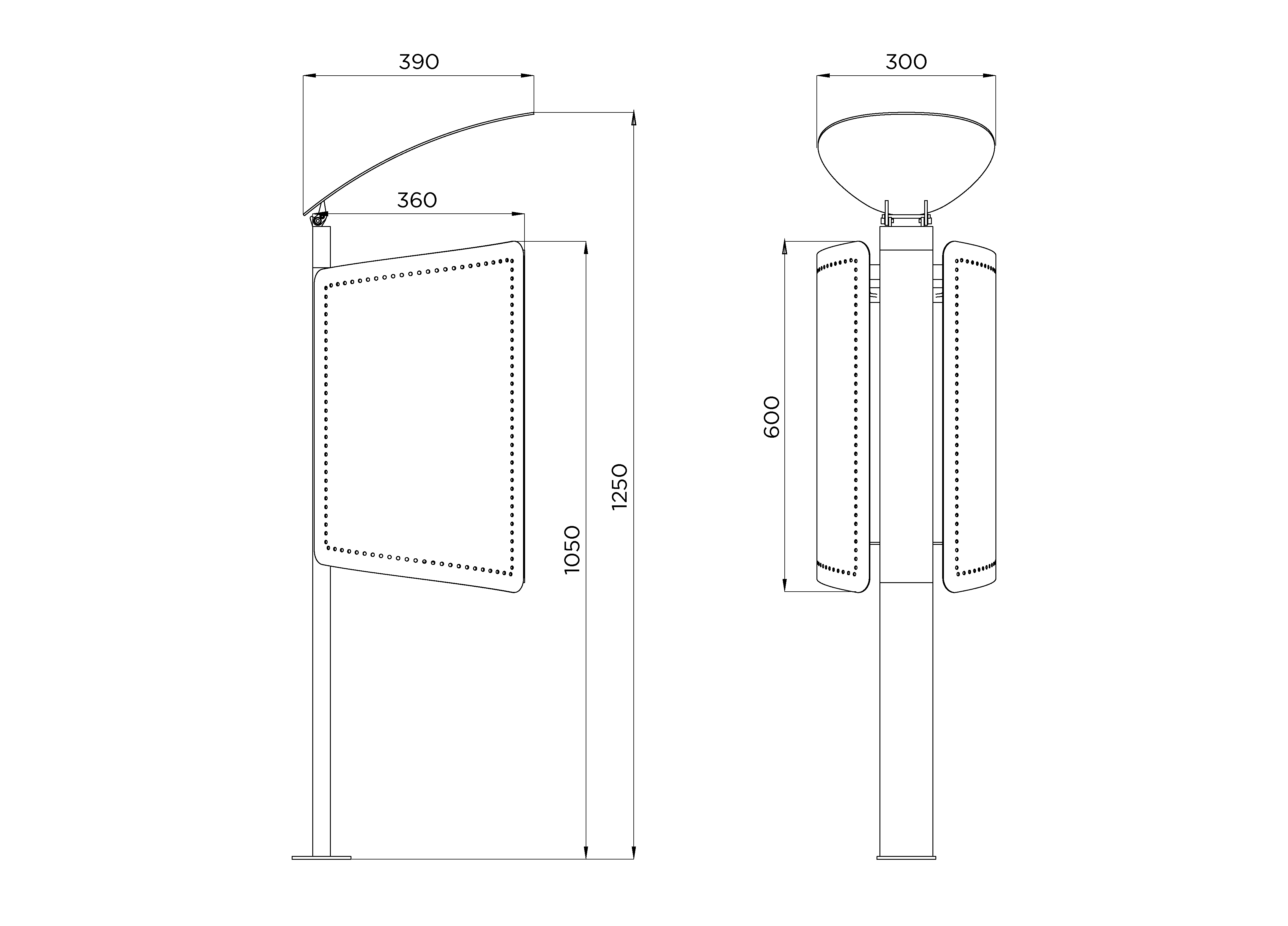 Fabricado en chapa de 2 mm de espesor con base de tubo estructural de 1.5 mm, ofrece una gran resistencia y durabilidad frente al uso intensivo en entornos urbanos. Su diseño está pensado para ocultar la bolsa de residuos, evitando que quede a la vista y garantizando una imagen más prolija y cuidada del espacio público.