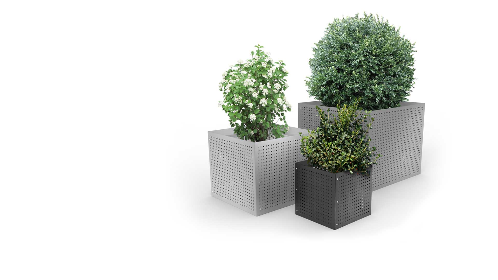Con una amplia variedad de colores y perforados (consultar opciones), se adapta a distintos estilos y necesidades. Su diseño no solo permite contener y embellecer macetas, sino que también puede utilizarse como delimitador de espacios o complemento decorativo, combinando a la perfección con cualquier tipo de mobiliario urbano.