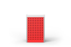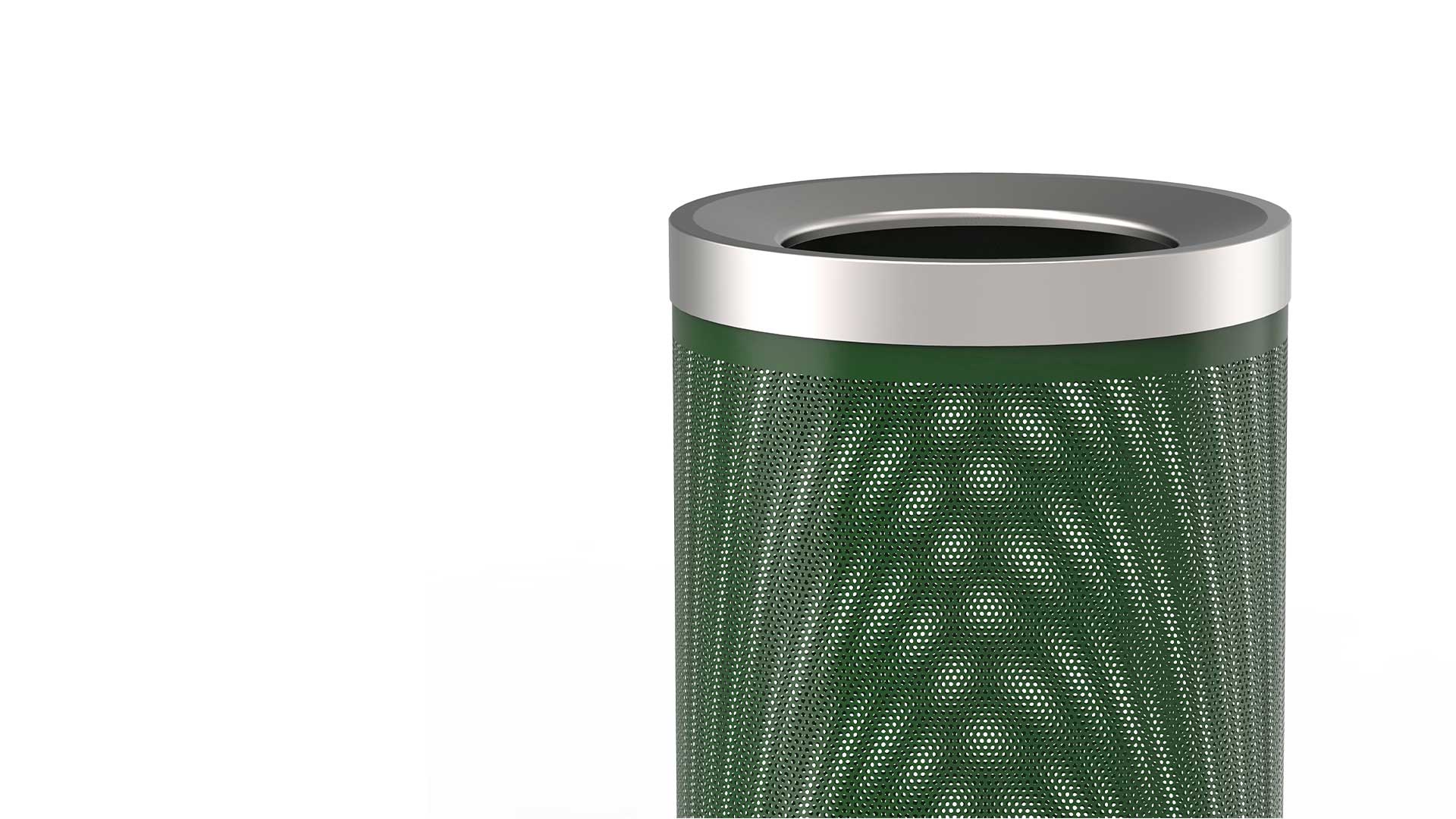 Fabricado en chapa perforada y aluminio, está disponible en tres tamaños y puede personalizarse en sus terminaciones, ya sea en acero inoxidable o con pintura poliéster termo convertible en una amplia gama de colores.
