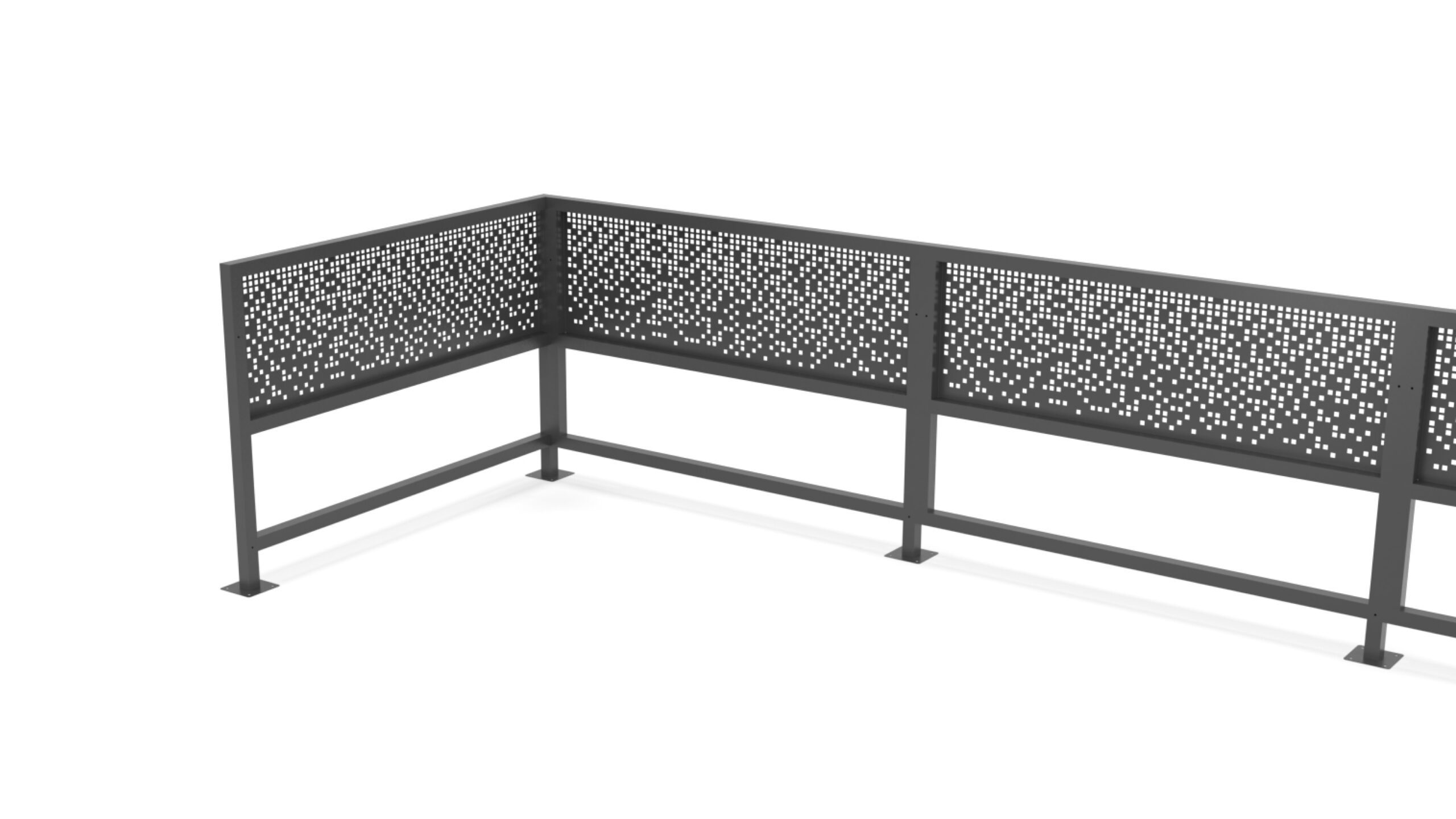 Fabricado en estructura metálica robusta, cuenta con bases para amurar, garantizando una fijación firme y segura en la vía pública. Puede realizarse con chapa entera o en versión de media chapa, dejando espacio inferior para una mayor integración visual con el entorno.